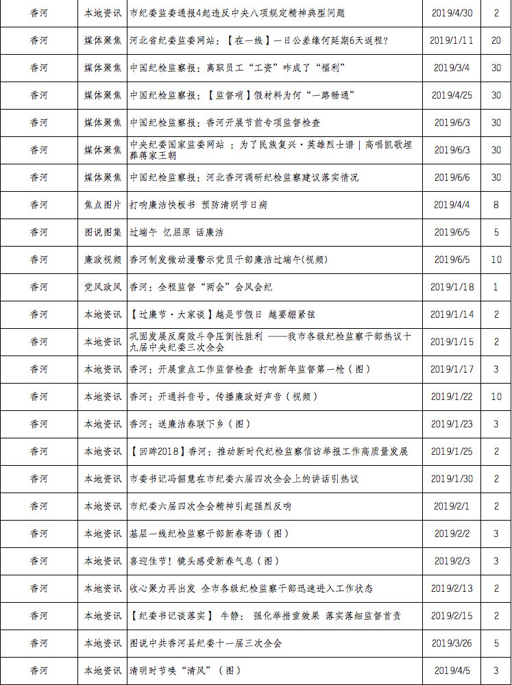 廊坊纪检监察网2019年稿件采用情况 廊坊市纪委监委网站-十大正规娱乐平台